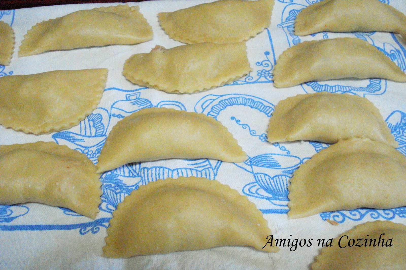 Numa superfície lisa e fria, de preferência, molde e frite os pasteis como mostra AQUI.