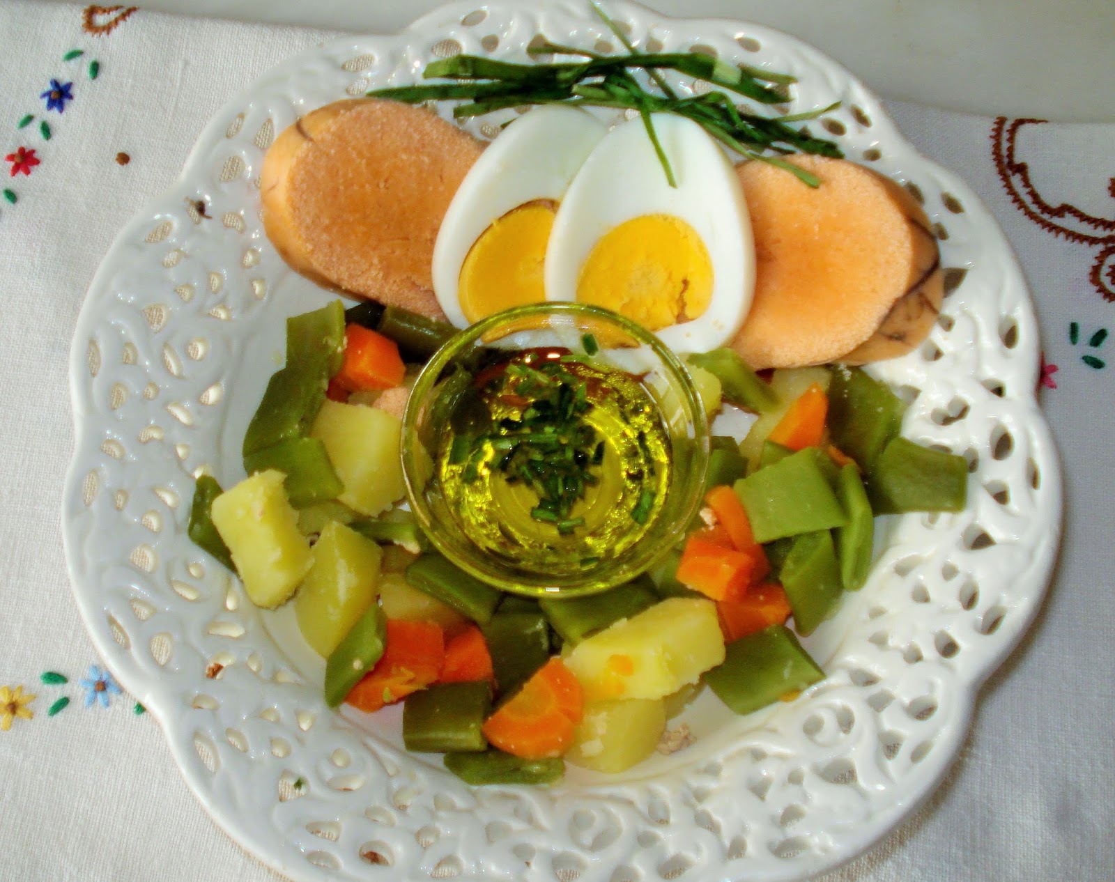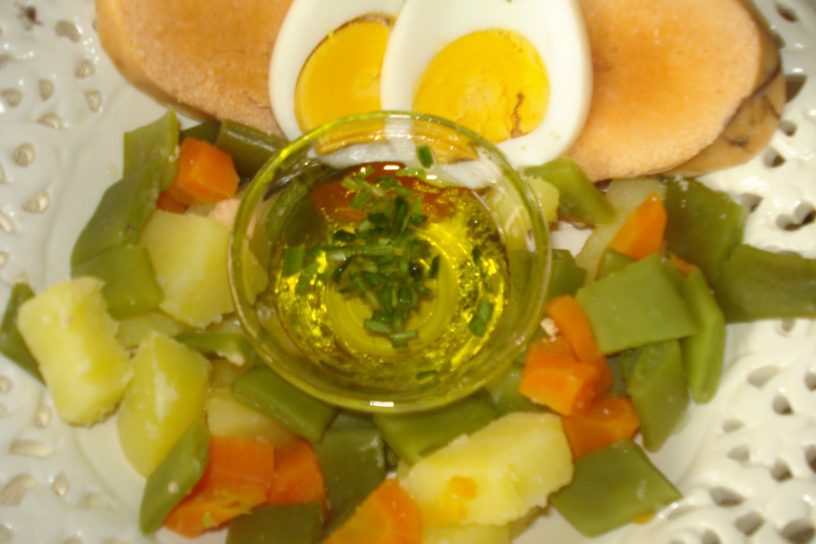 - Cortar o ovo cozido em pedaços.