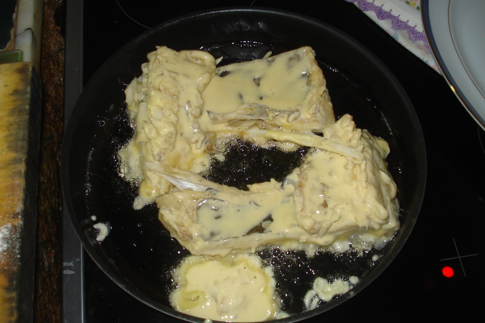 Passar cada lasca de bacalhau por este polme e fritar em ambos os lados até ficar dourado.