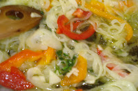 Cortar em tiras os pimentos, eu gosto bem finas.